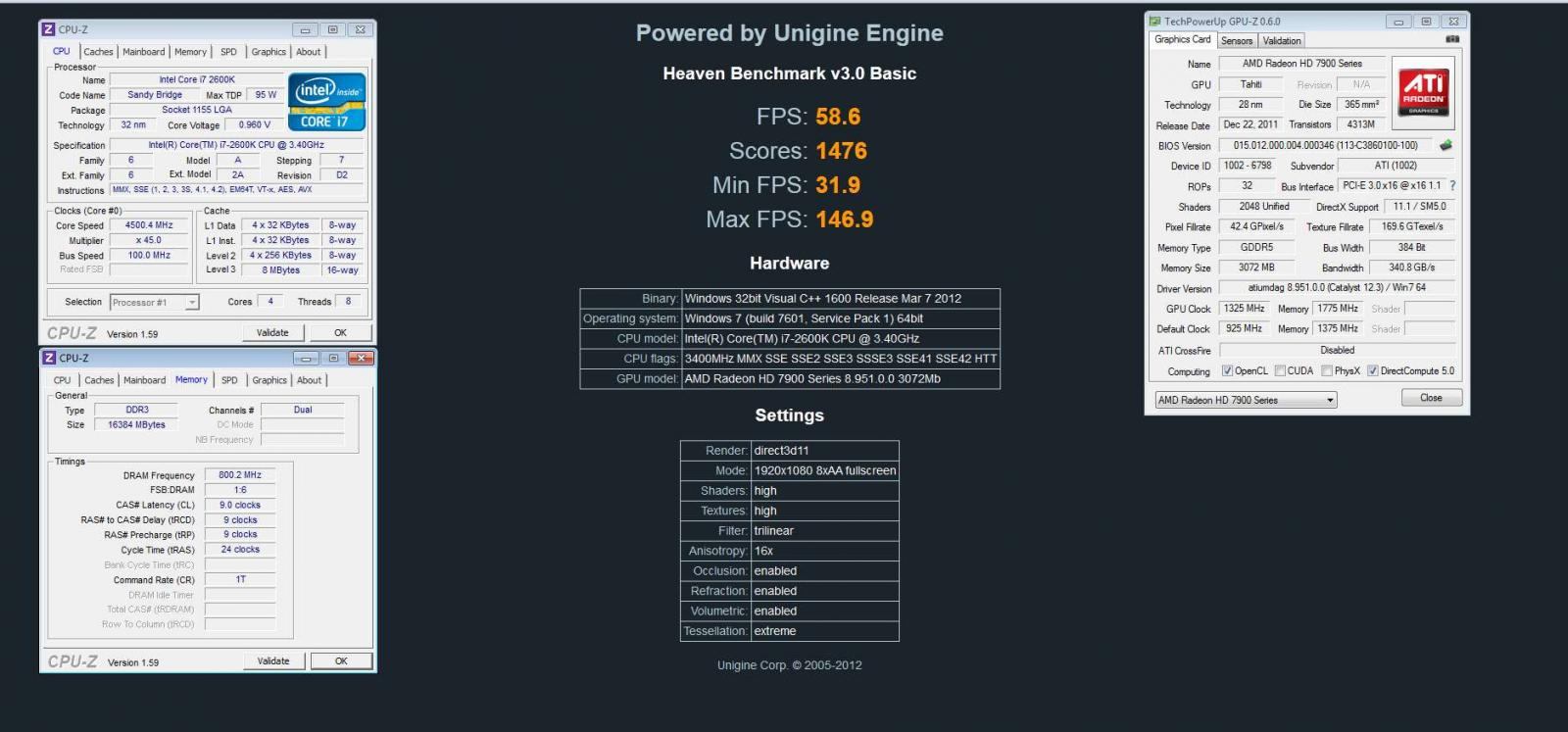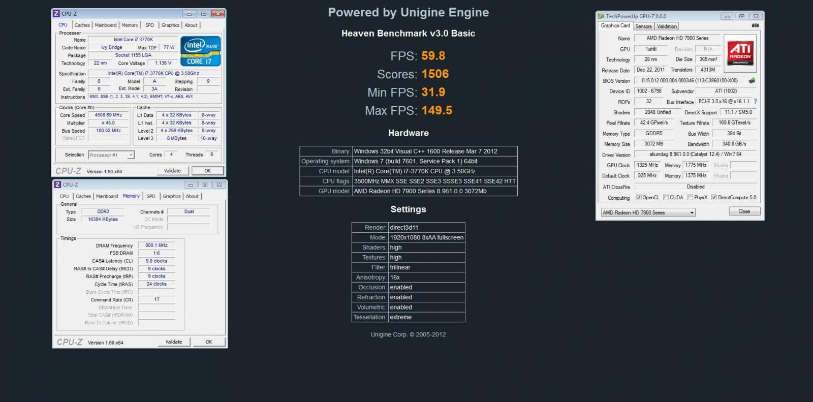 Intel Ivy 3770k @ 4,5Ghz / 16GB DDR3 1600 Cl9 / 7970 PCI-e 3.0 @ 1325GPU/1775MEM