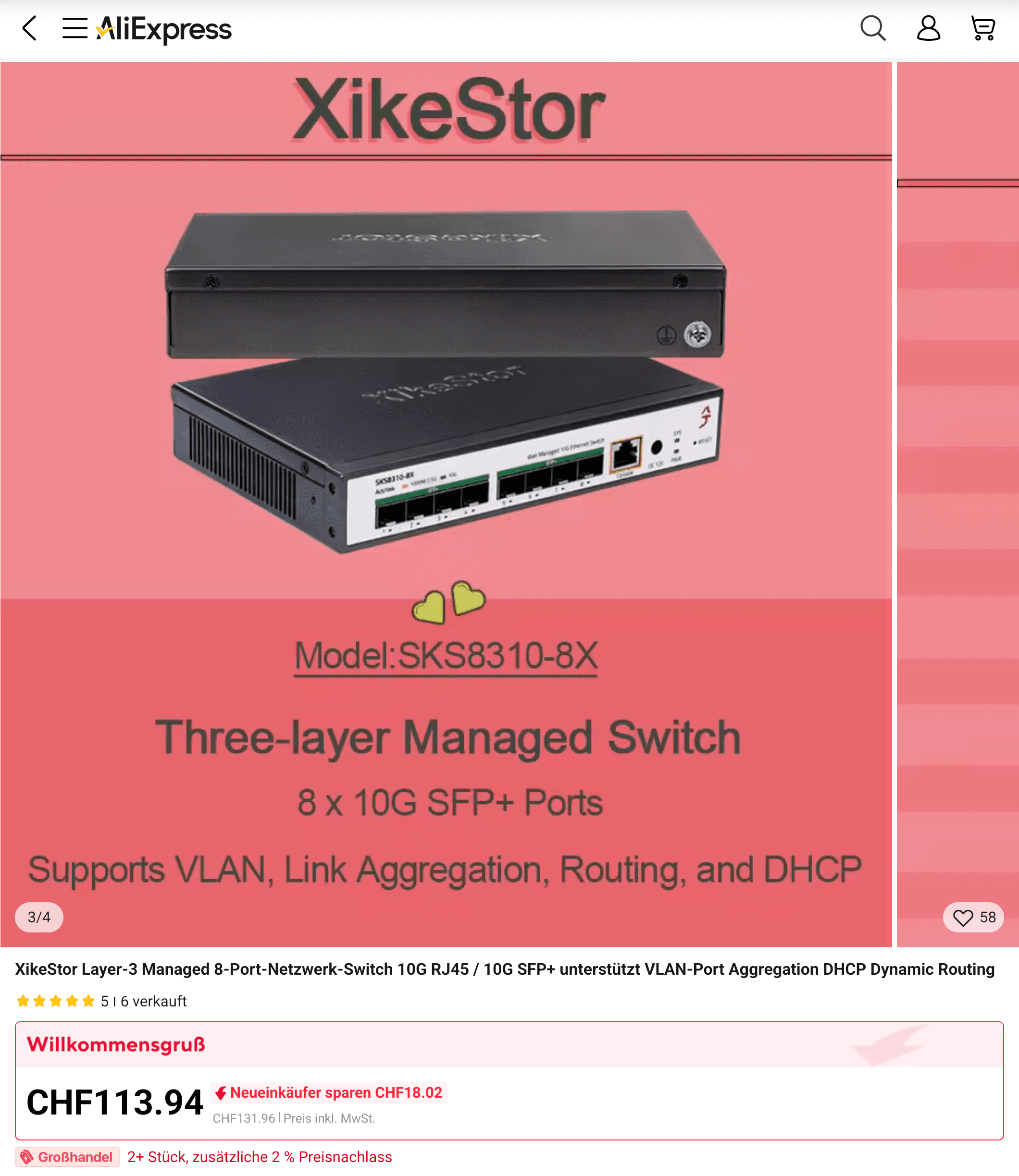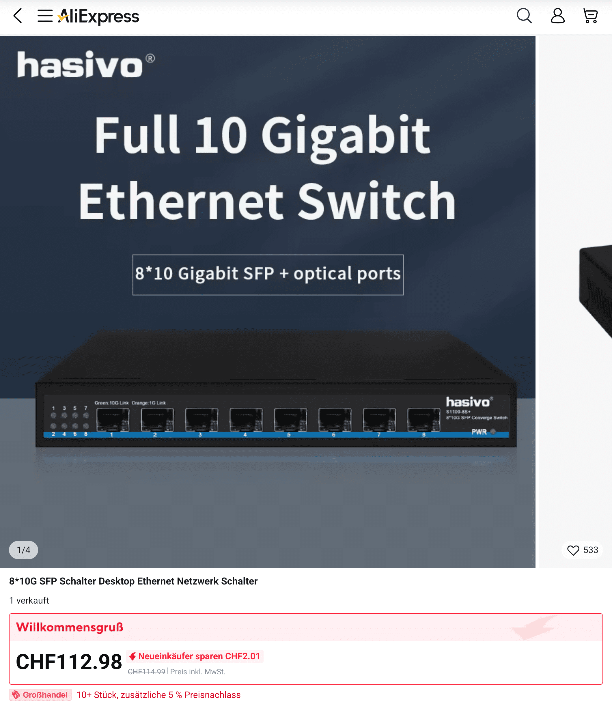 8x 10G SFP switches um die 114chf rum.