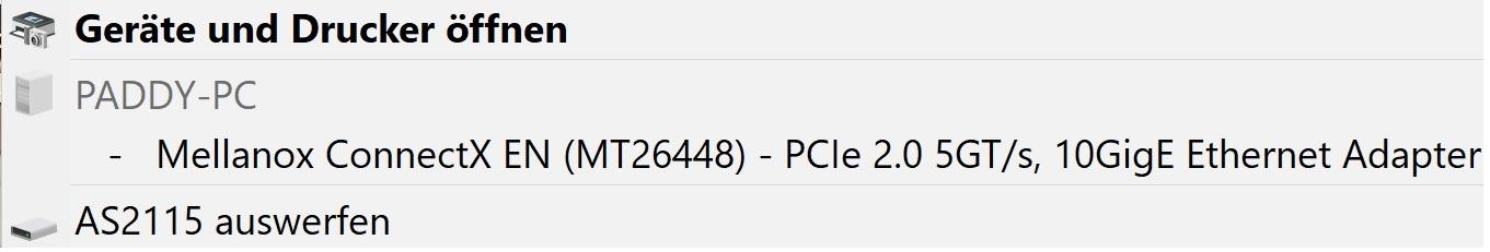ich habe mit meiner ConnectX2 in Kombination mit meinem neuen Asus Board (Z270G) leider das Problem, dass die Connectx2 unter Windows als "auswerfbares" Gerät angezeigt wird. Auch im BIOS steht sie in der Bootreihenfolge. Sollten da nicht nur Laufwerke stehen?