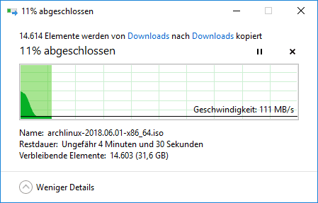 Nun uebertrage ich extrem grosse Dateien auf meinen NAS, super schleppend, obwohl die Quelle eine NVMe SSD ist, als auch das Ziel.