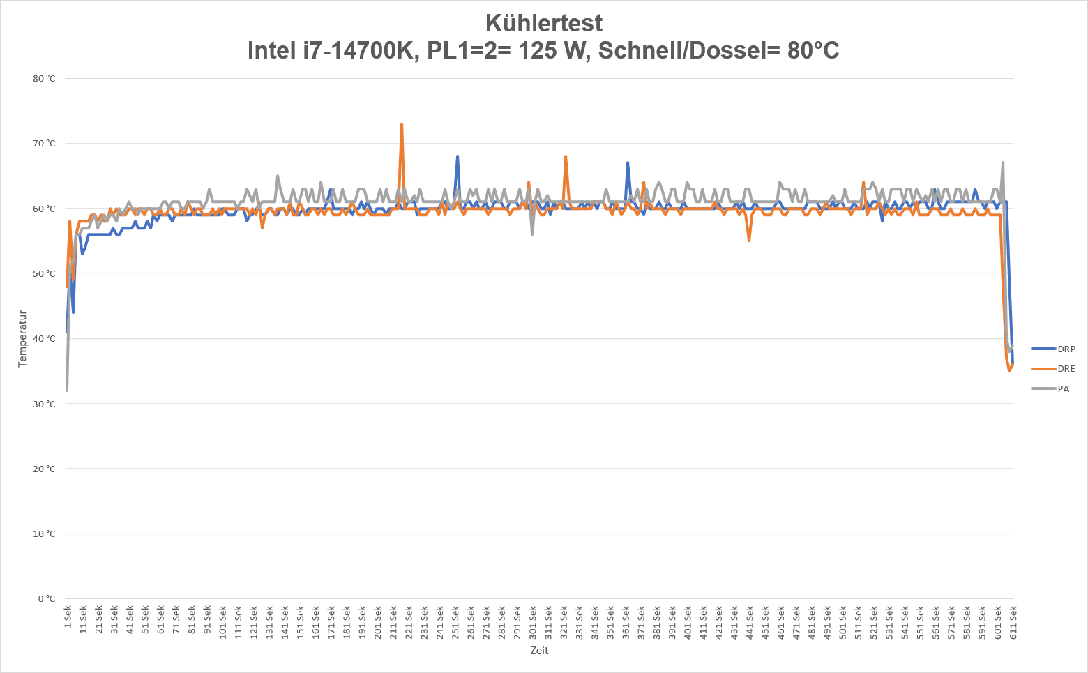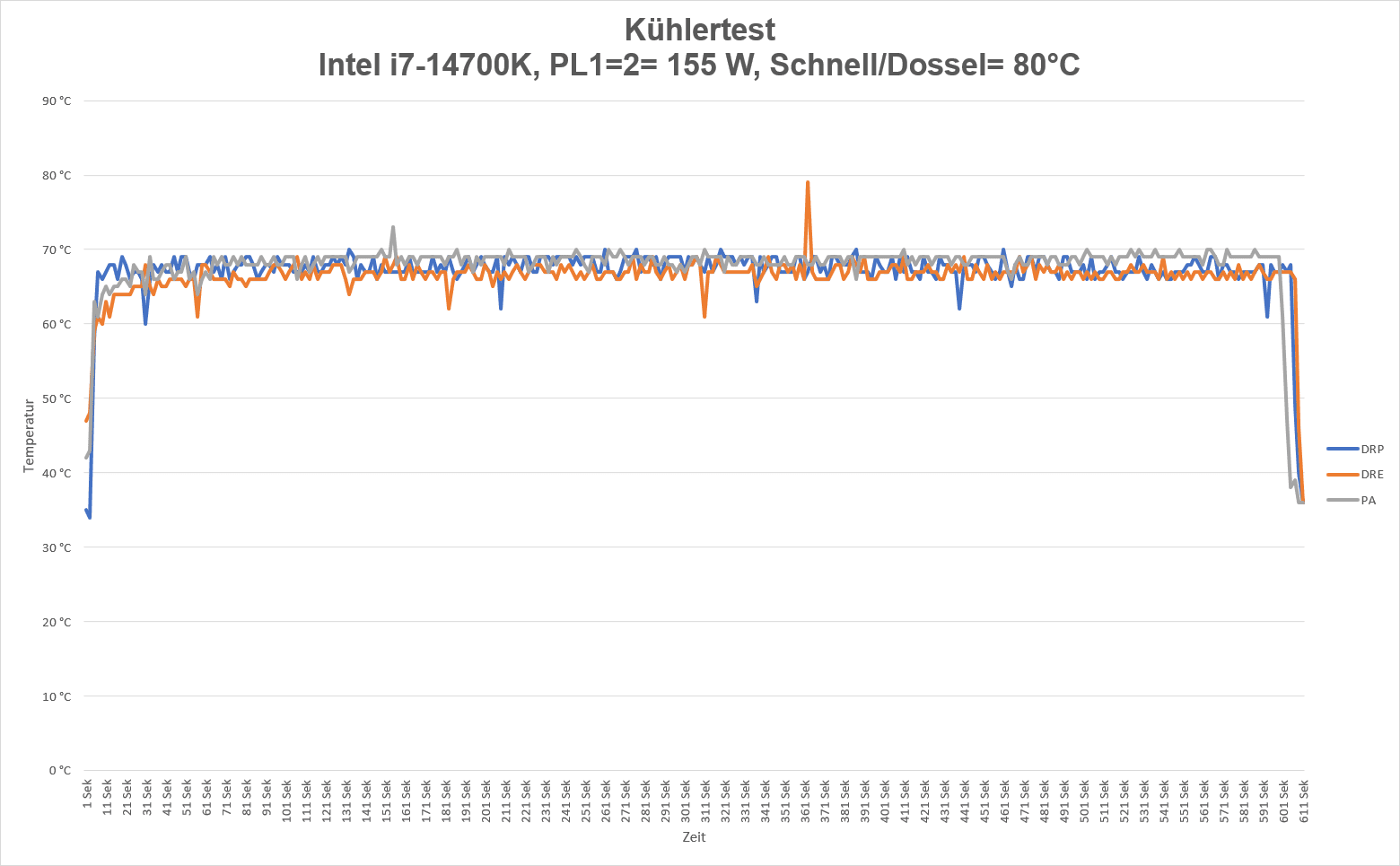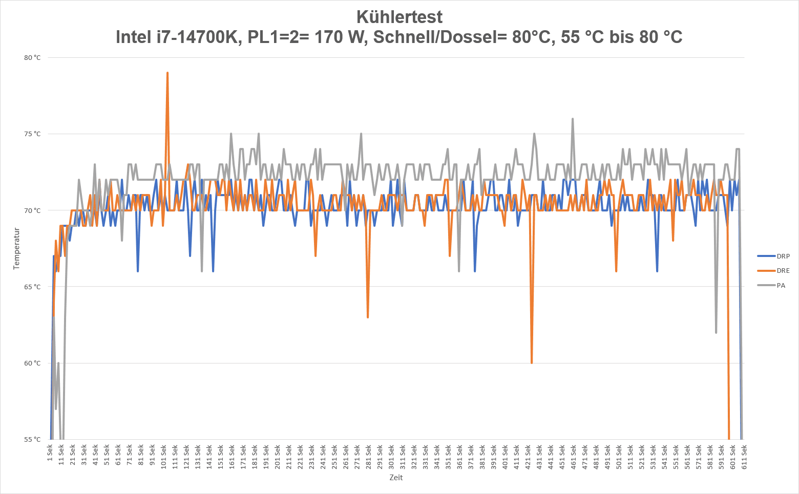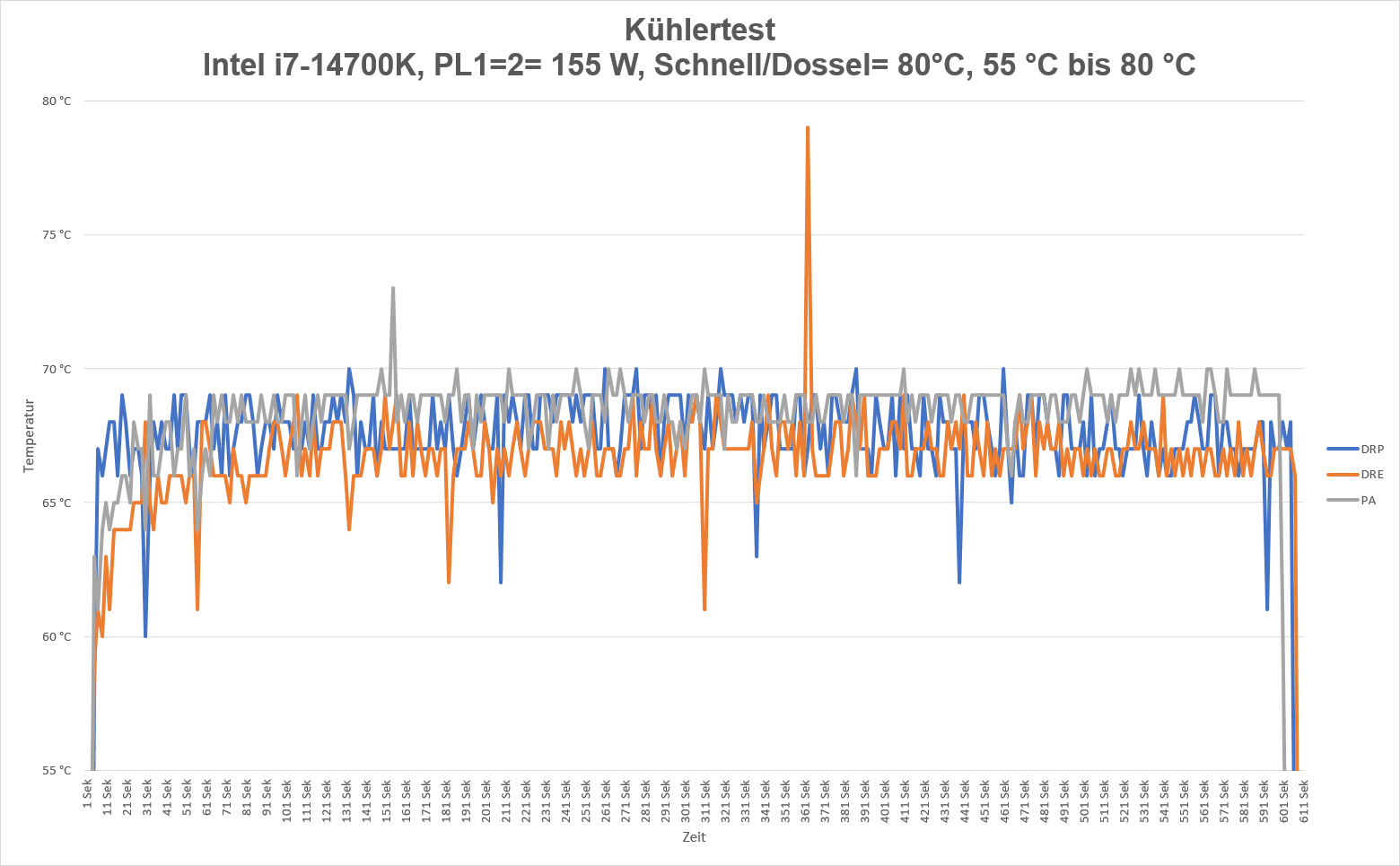 Ich habe den Kühler im Cinebench R23 mit den Powerlimits PL1=2= 125 , 155 W und 170 W getestet. Als Vergleichskühler habe ich noch den Dark Rock Pro 5 und den Peerless Assasin 120 SE mit zwei Arctic PWM PST 120 Lüftern genommen.