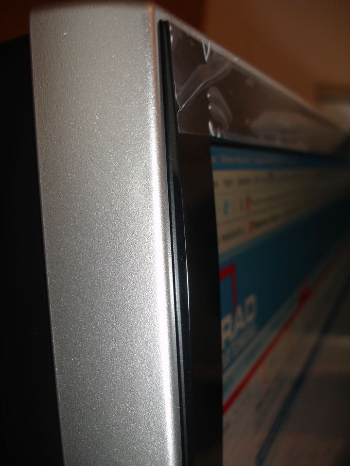 Gerade ist mir aber auch aufgefallen, dass der Rahmen links oben verbogen aus dem Monitor heraussteht (sieh Anhang).