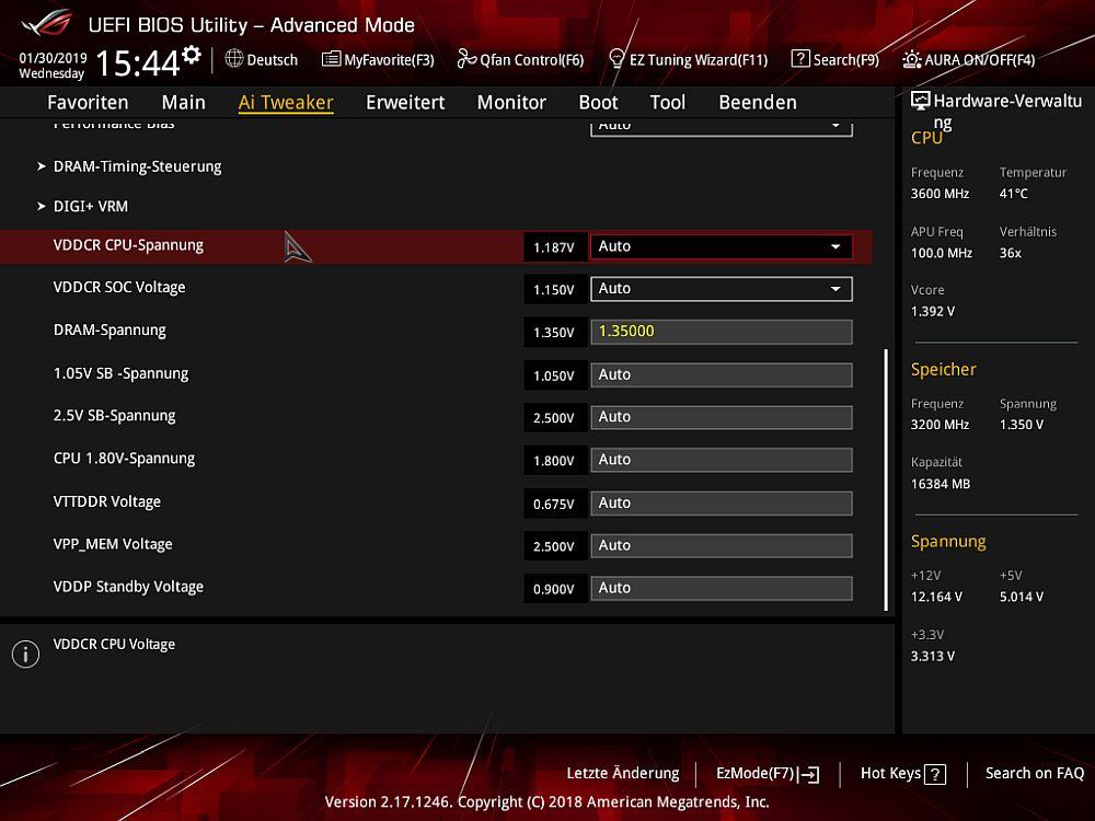 Aber wie geht das, was muss ich im Bios einstellen? Die VDDCR Spannung habe ich schon versucht über das Offset ins Minus zu stellen. Also VDDCR von Auto auf Offset, dann im Fenster darunter auf Minus gestellt und dann im nächsten Fenster mit der Plus Taste den Wert verändert, bis auf 0.0500.