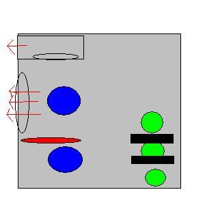 dann der obere blaue lüfter bläst direkt auf meinen 9500cu der in richtung hecklüfter gerichtet ist. der bläst ja auch raus.