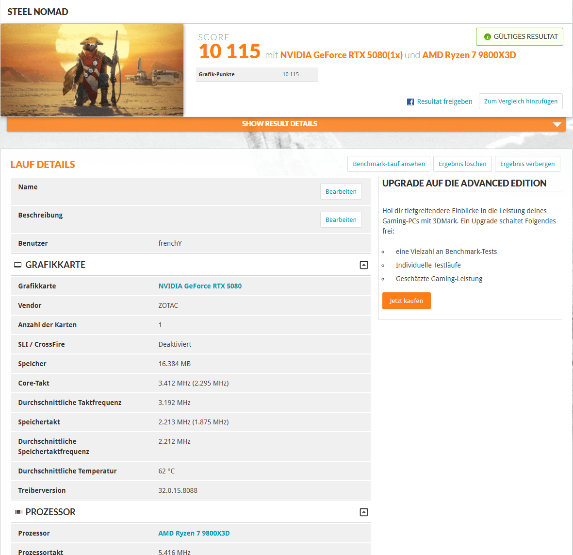 Aha, neue Variante. Meinetwegen, ich trag's ein. Für die Zukunft: Ergebnisse werden standardmäßig in \Dokumente\3DMark gespeichert und lassen sich sowohl von dort aus als auch aus dem 3DMark-Interface aufrufen.