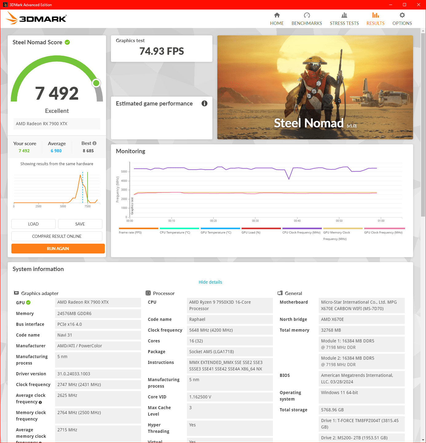 - 7950X3D / Lexar ARES RGB Kit 32GB, DDR5-7200, CL34