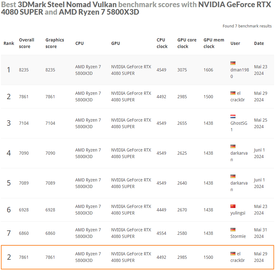 3DMark Steel Nomad Rangliste