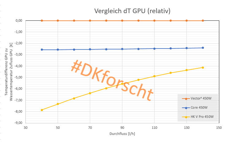 Damit ist es eher so, dass sich beim HK V Pro mit abnehmendem Durchfluss das dT weniger stark erhöht als bei den anderen beiden Kühlern.
