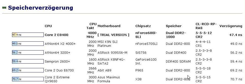 CPU CPU Takt Motherboard Chipsatz Speicher CL-RCD-RP-RAS Lesegeschwindigkeit