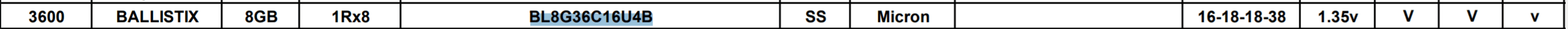 - 4x 8GB Crucial Ballistix BL8G36C16U4B (3600 MHz, 16-18-18-18-38-58-1T, Micron E-die)