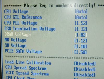 Beim RAM hat er allerdings recht. Geh da mal von 1.8 Volt aus, und taste dich mal bis 2 Volt vor - wenns nix bringt, ist zu niedrige vDimm nicht die Ursache. :wink: