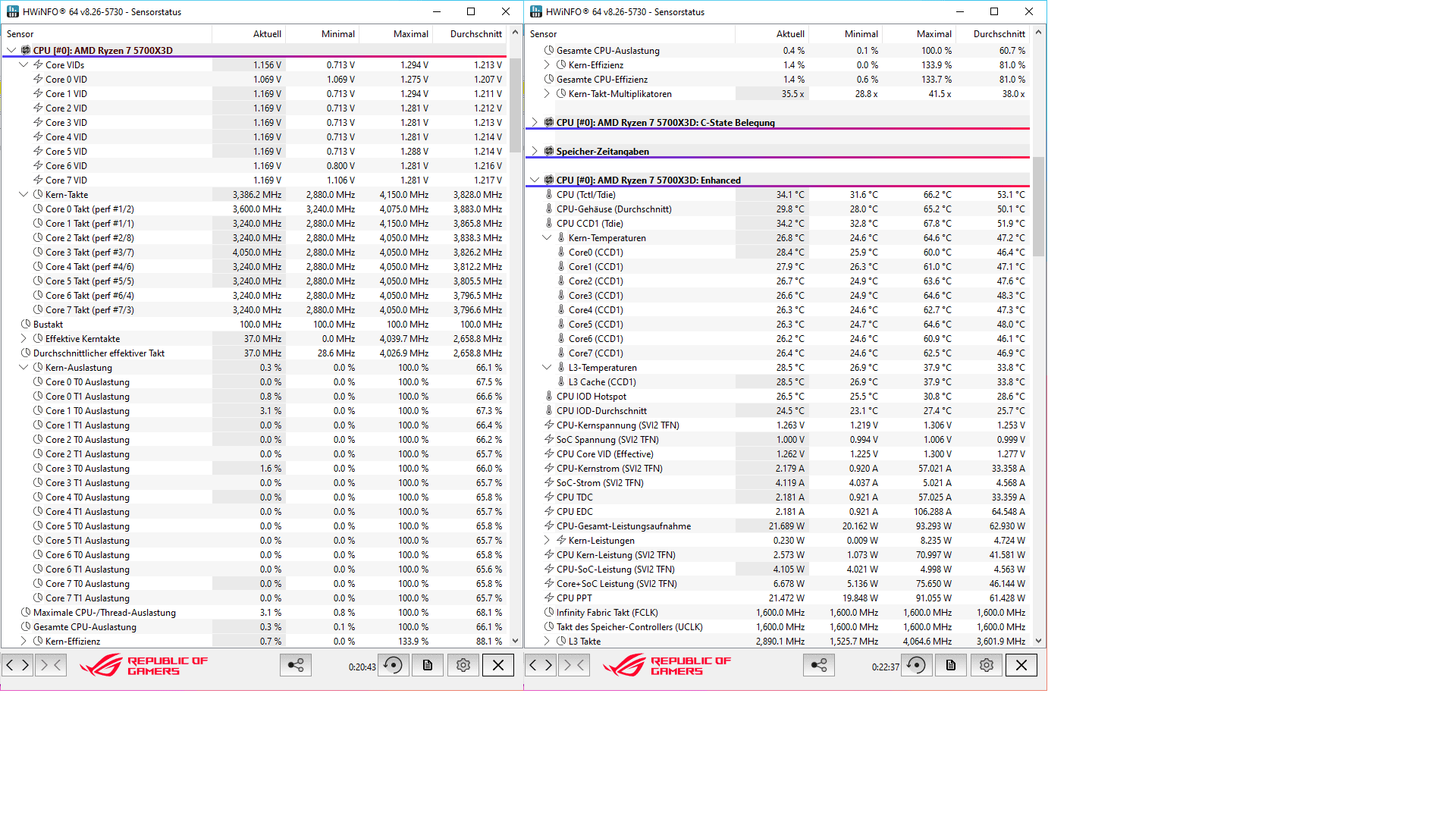 5700X3D, Asus ROG Board, 360er Corsair AIO