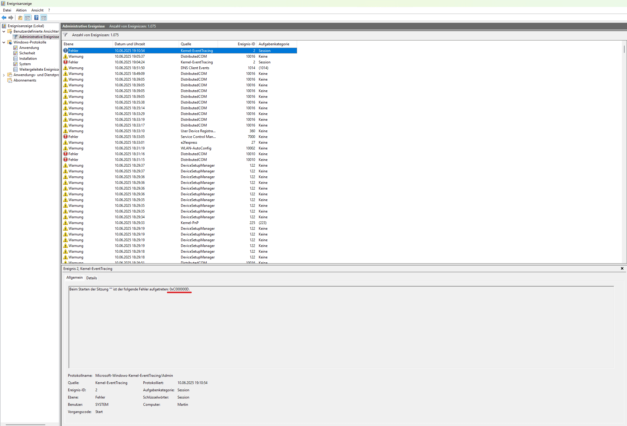 Nach dem Reset des PC´s erhalte ich dann oftmal folgende Fehlermeldung seitens AMD Software: