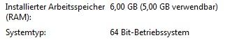 Hab grade 2x2gb ram zu den vorhandenen 2x1gb verbaut, aber die Systemsteuerung sagt "Installierter Arbeitsspeicher 6,00 GB (5,00 GB verwendbar)". Auch der Taskmanager zeigt nur 5 GB an.