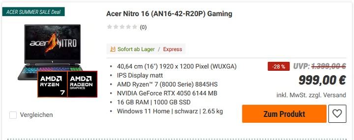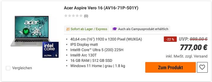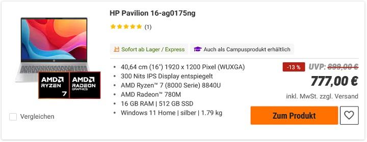 Bei den Notebooks gibt es ja schon für 777€ ganz brauchbare Notebooks mit 16" Display und entweder Intel Core Ultra 5 225H oder AMD Ryzen 7 8840U. Zwar beide ohne dedizierte GPU aber die Intel Arc T130 bzw. AMD Radeon 780M iGPUs sind auch nicht ganz schlecht.