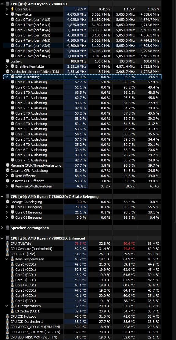 Außerdem bin ich mir unsicher, welche Temperatur in HWInfo tatsächlich ausschlaggebend ist. CPU (Tctl/Tdie) oder CPU-Gehäuse Durschnitt?