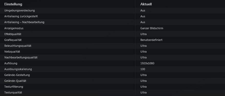Alles auf Ultra ohne AA und Umgebungsverdeckung