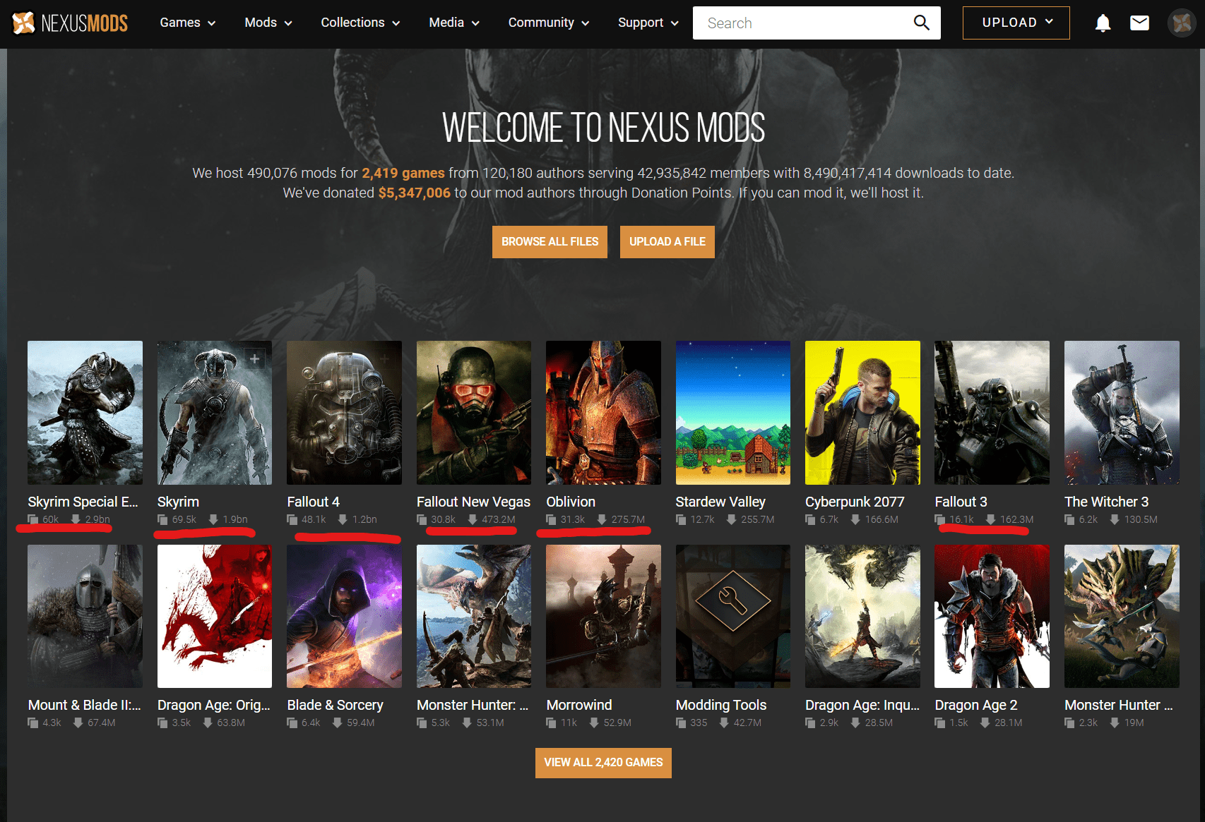 es hat einen grund warum auf nexusmods skyrim und fallout 3/4 die meisten mods haben.