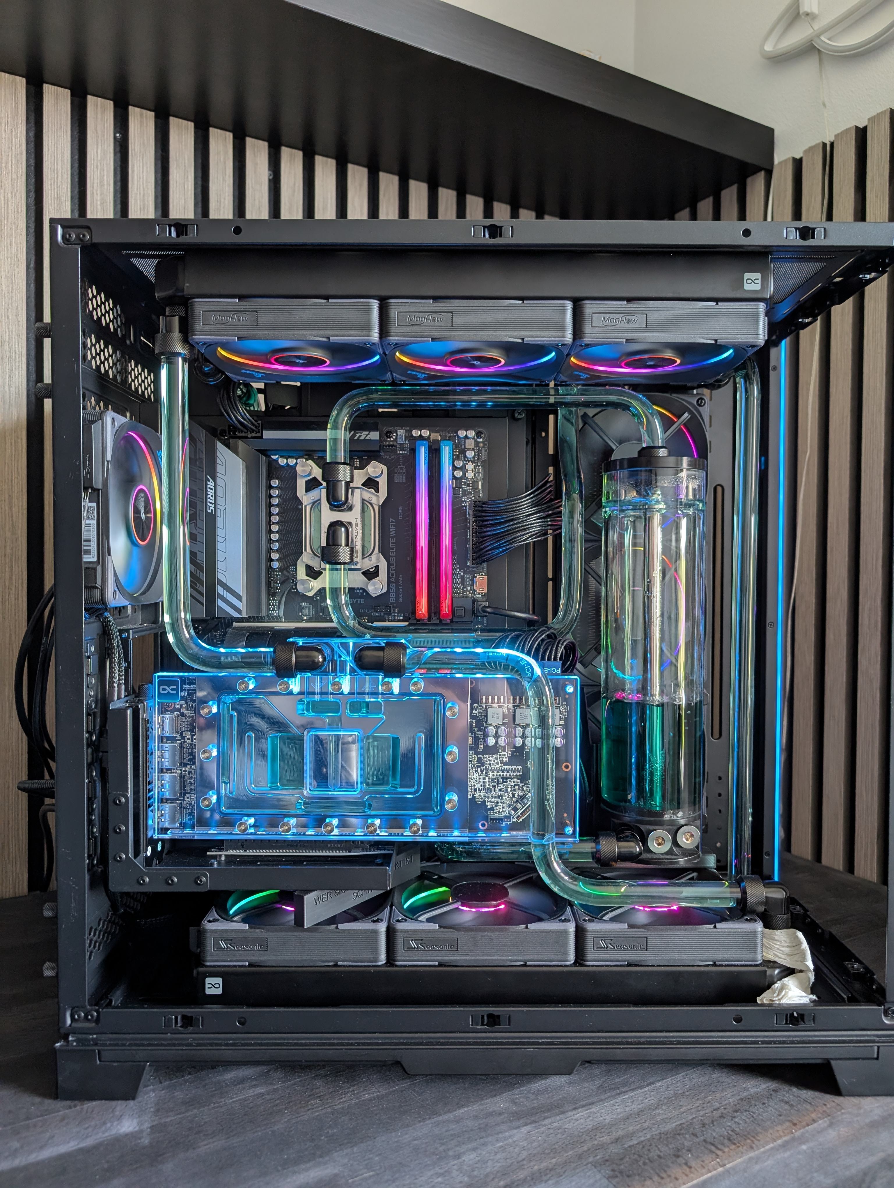 Das Setup ist mit eine Custom Wakü verbaut. Somit ist es nicht mal eben so auseinander zu bauen und kann nur bedingt Testszenarien ausprobieren.
