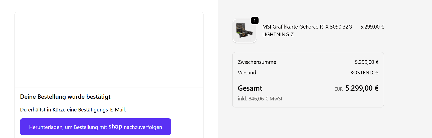 nicht bei dem Preis, die Matrix war günstiger und limitierterEgal, ist bezahlt.. Hauptsache ich habe eine und UPS Tracking habe ich auch schon.. Daher freue ich mich jetzt einfach...