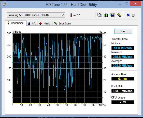 Also HD Tune gestartet und den Benchmark durchlaufen lassen.
