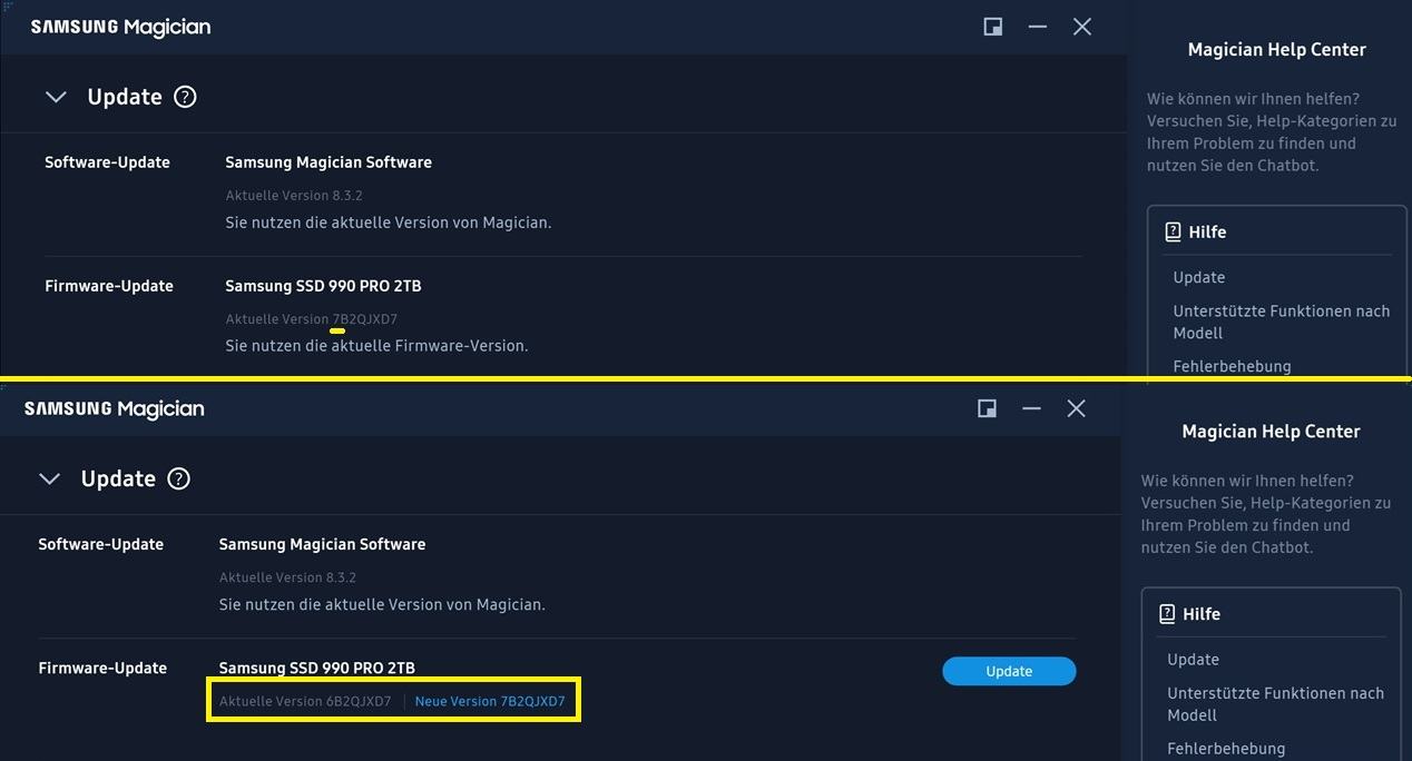 Neu ist eine 990 Pro 2TB als Systemplatte in den Rechner rein gekommen. Bei der Installation von Windows war auch nur die NVME als einzige Platte im System verbaut. Erst nach der Installation sind die drei anderen Platten verbaut und eingebunden worden.
