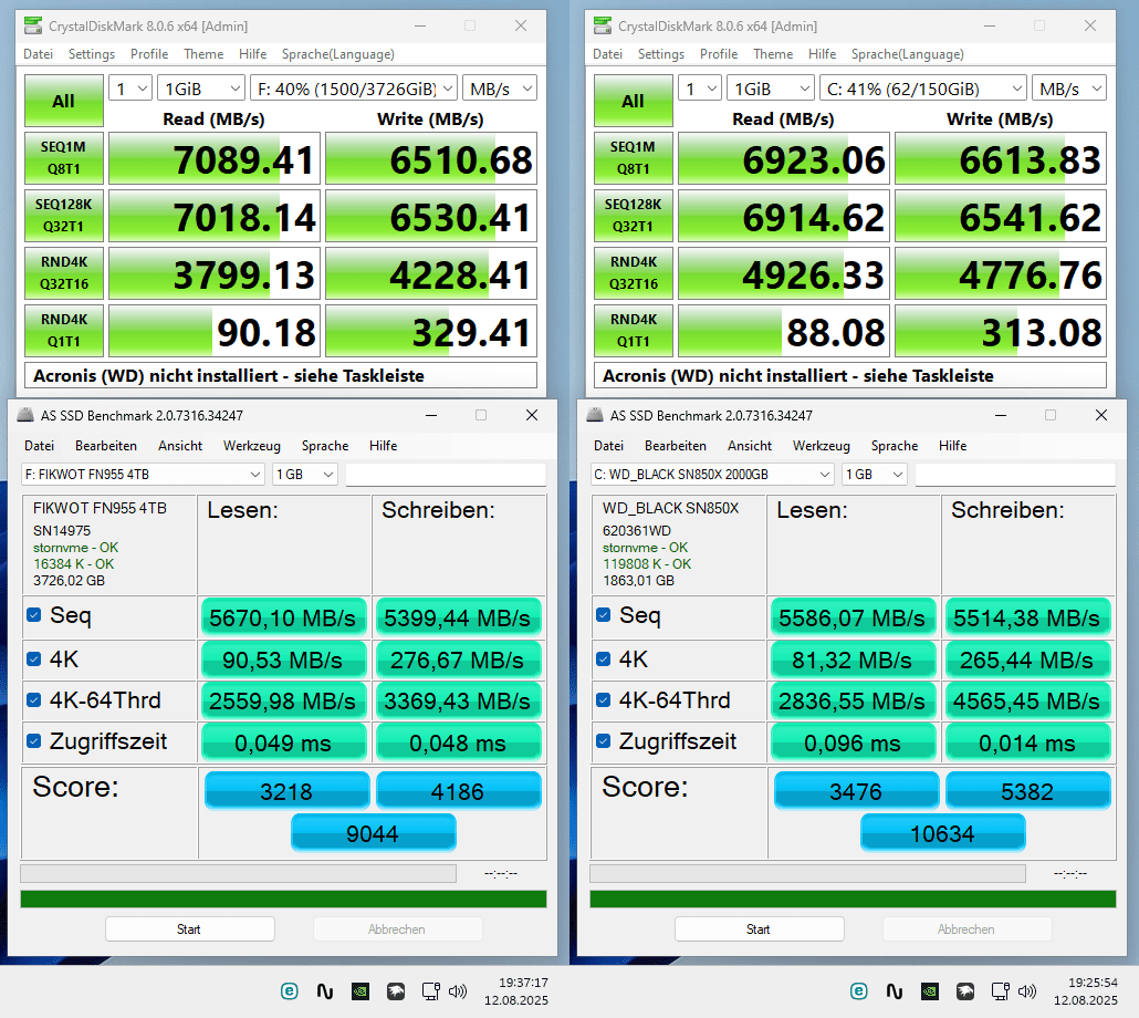Hier mal die Werte einer SN850X und einer FN955:
