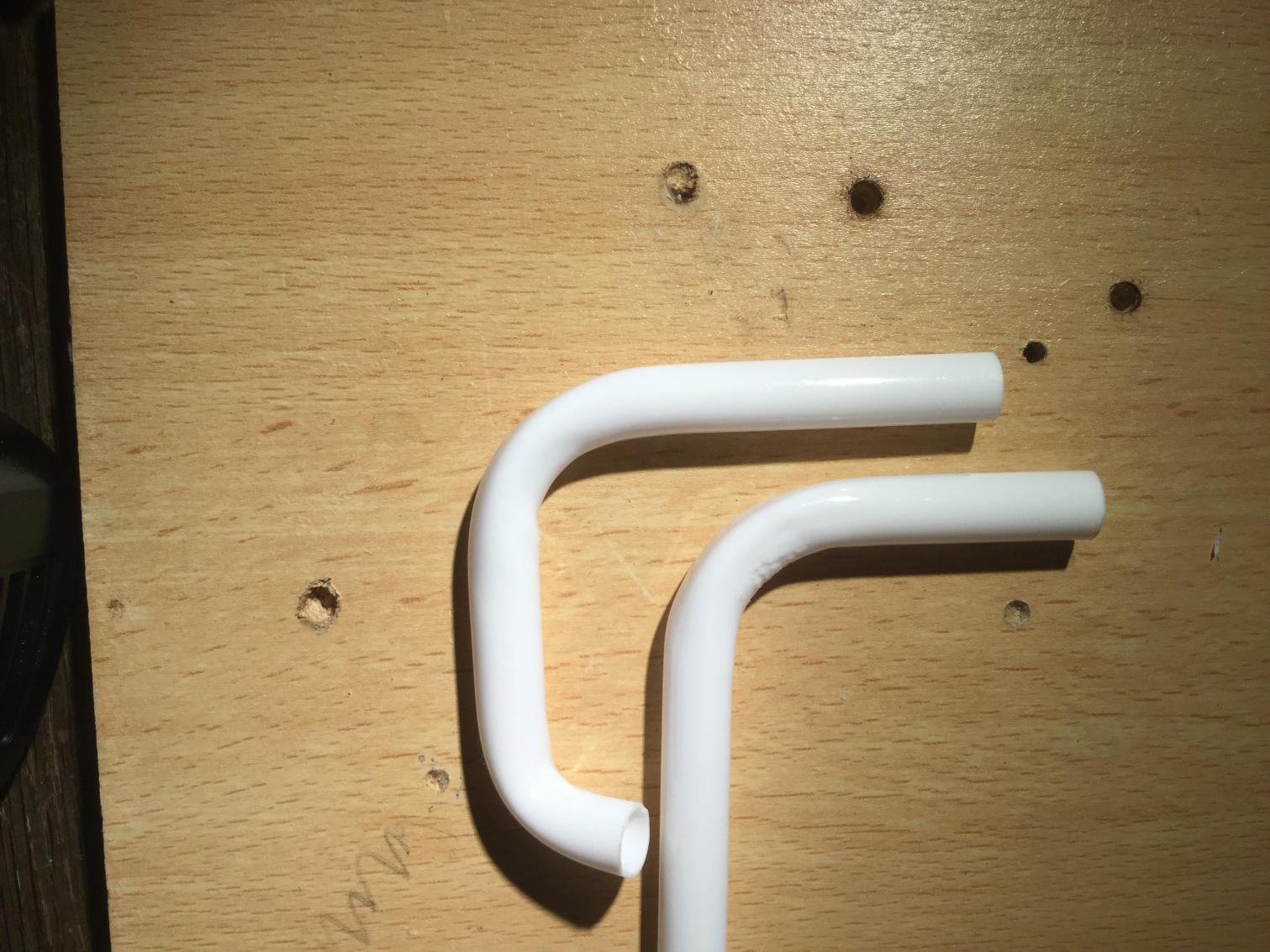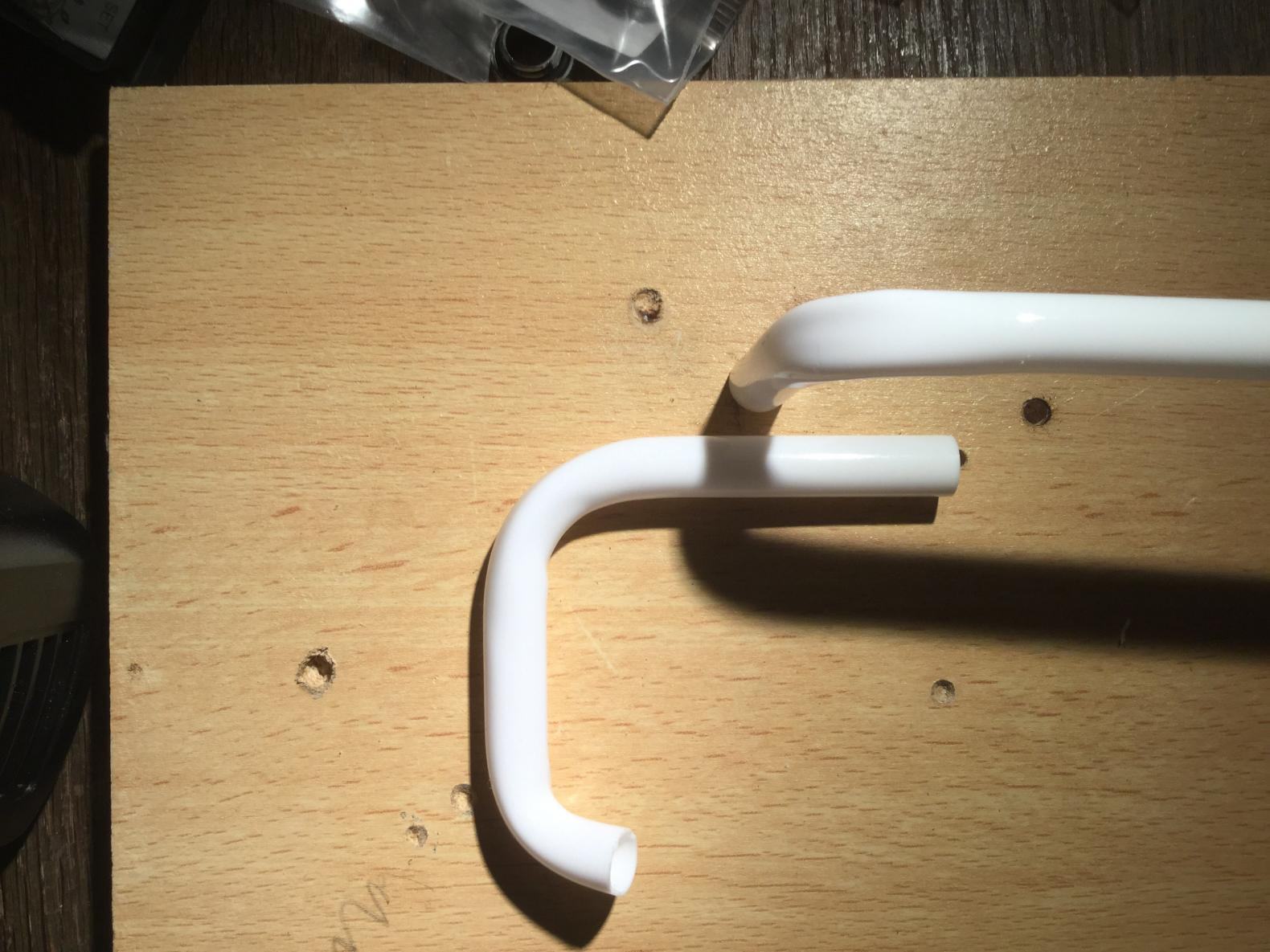 Allerdings ist das Rohr im innenradius etwas flach und sieht aus wie etwas zusammengedrückt. Auch im außenradius sieht es gedrückt aus. Dies gefällt mir nicht. Perfekt wäre, wenn das Rohr komplett rund wäre, so wie im ungebogenen originalzustand sozusagen.