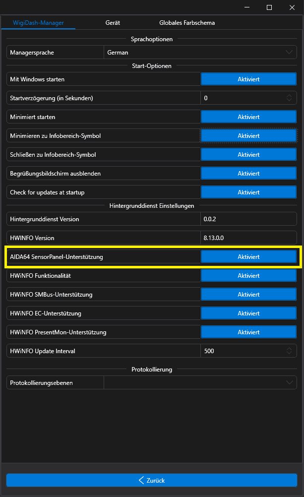 Aida64 bekommt keine Verbindung zu meinem Wigidash