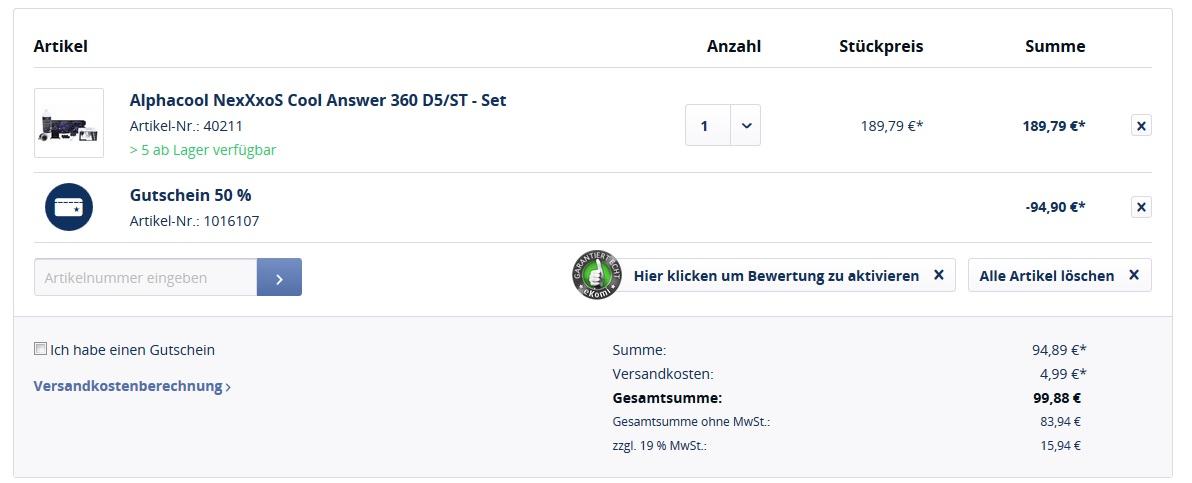 Wer gerade den Kauf einer AiO Wakü erwägt, sollte bei den 95€ eigentlich nicht lange überlegen.