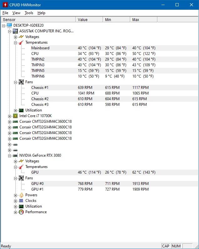 Selbst nach einer Stunde DOOM Eternal auf ultra werden CPU und GPU nicht wirklich heiß, finde ich. Im Desktopbetrieb bleibt alles knapp über Raumtemperatur.