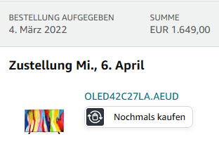 Am 04.03 war er kurz vorbestellbar bei Amazon. Da hatte ich den LG 42iger Oled vorbestellt.