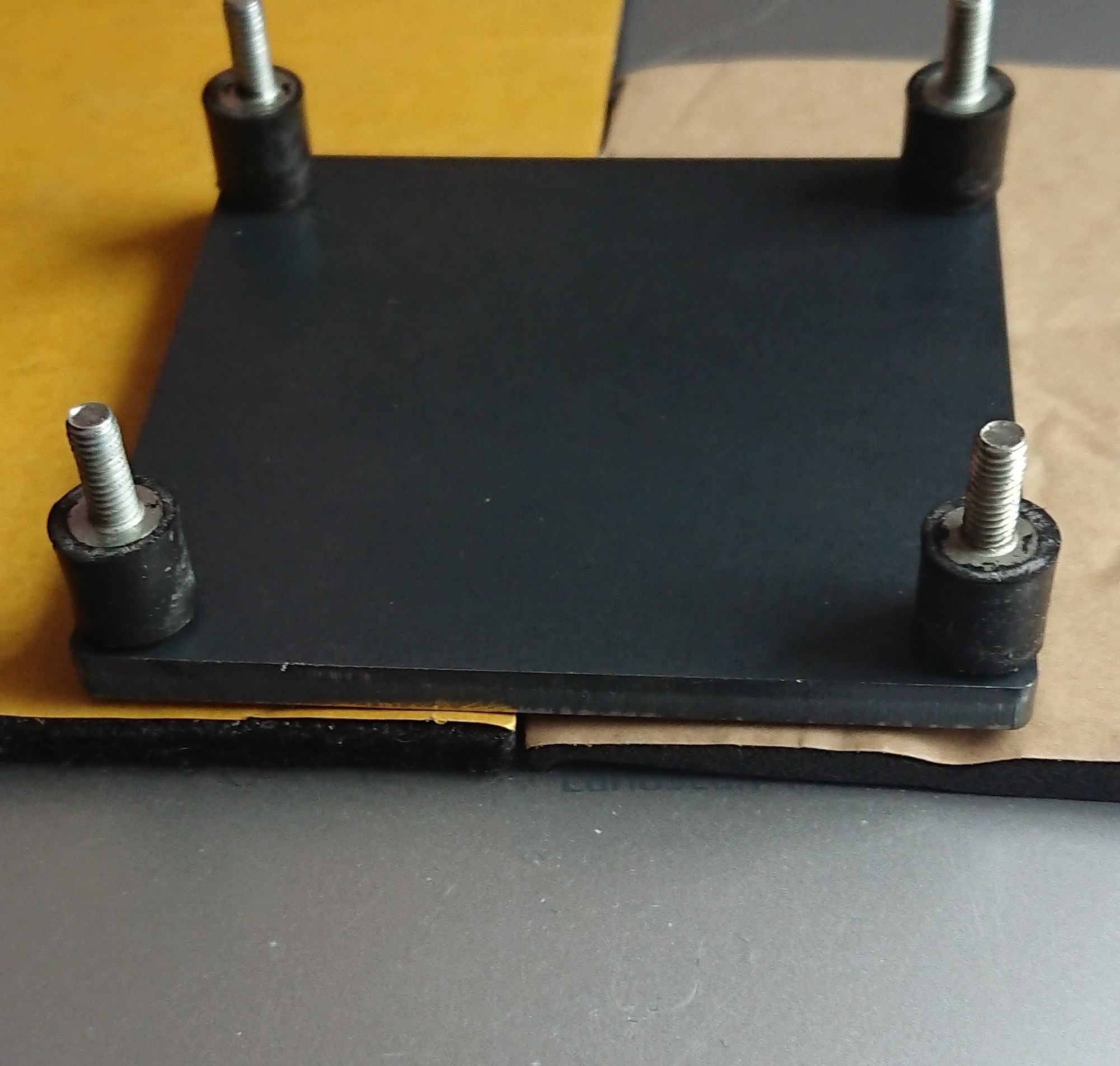 Die Einfache ist eine Stahlplatte unter der vier Entkopplungsgummi´s sitzen und ist nur 15mm hoch .