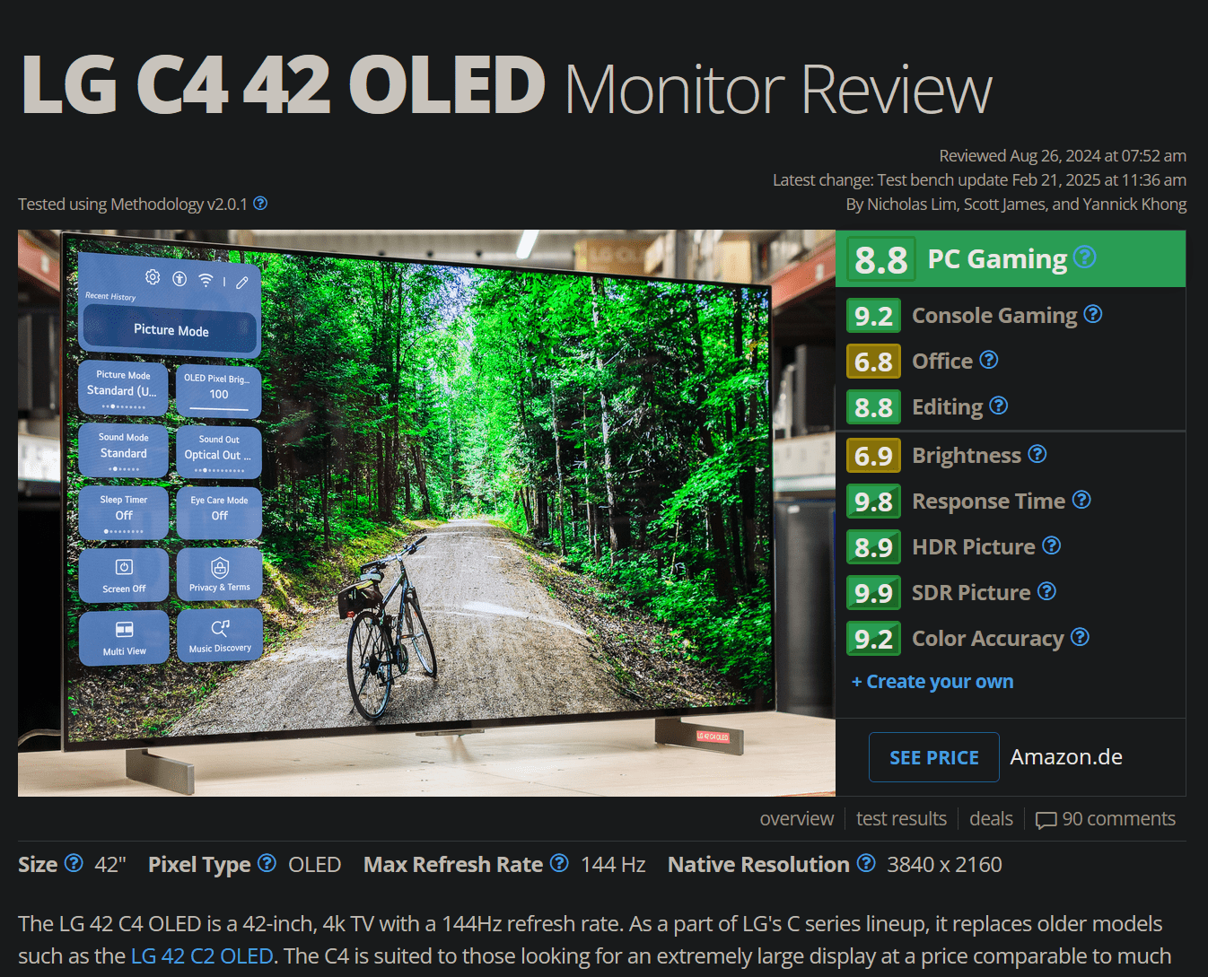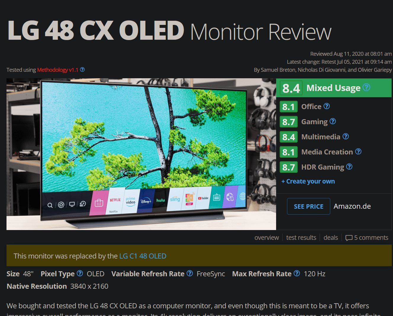 Die 48" und 42" OLED TVs werden von RTINGS auch als Monitor getestet und nich als TV :
