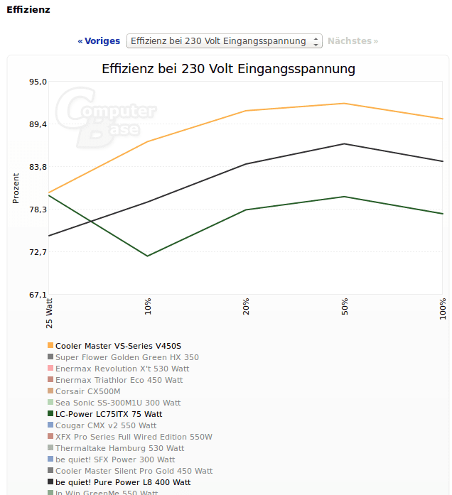 Deine Aussage kann also rein rechnerisch nur stimmen, wenn die Effizienz des Be Quiet Netzteiles darunter stark abfallen würde und die des Picos bei deutlich über 80% liegen würde, was ich beides für unwahrscheinlich halte.