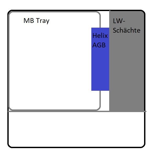 Die Überlegung ist dadurch das vorne in die Front nachher ein 240er Radi kommt, das man den Restlichen Platz noch so nutzen könnte, das der AGB im hinteren bereich Fixiert ist und dann mittig aus den Schächten Raus ragt, das er noch fast vollständig zu sehen ist, gibt es da irgendwie Montage Ansätze was man da machen könnte?
