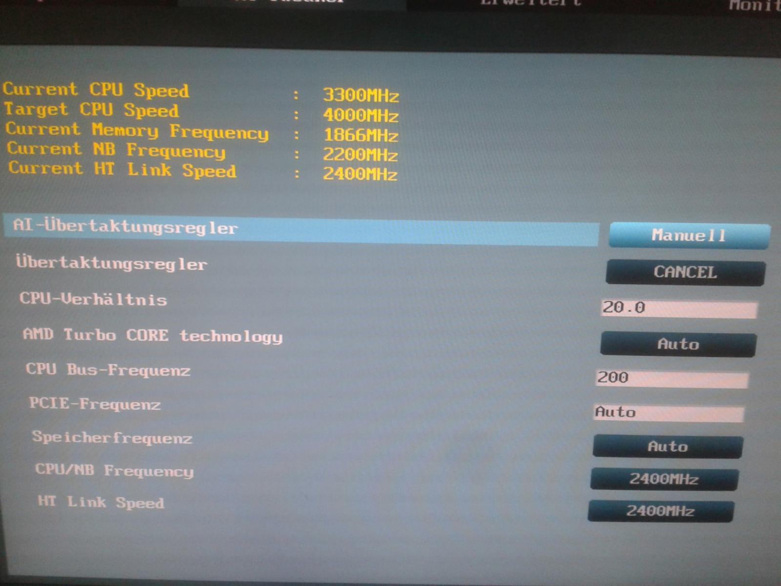 Mit Referenztakt und Multiplikatoren anpassen kam ich mal auf 2533MhZ oder so, aber das ist absolut nicht lohnenswert, ich würd gucken das das beides stabil auf 2400 geht und dann wenn du Glück hast kannst du bei dem Board beide Turbostufen einstellen. (zuletzt Asus M5A97 R2.0, mit jüngster Firmware ging das)