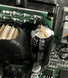Ich meinte exakt diese unsichtbare Gefahr im Kondensator, der eben nicht aufbläht, sondern innerlich "degeneriert" und dadurch das von dir beschriebene Szenario erzeugt.