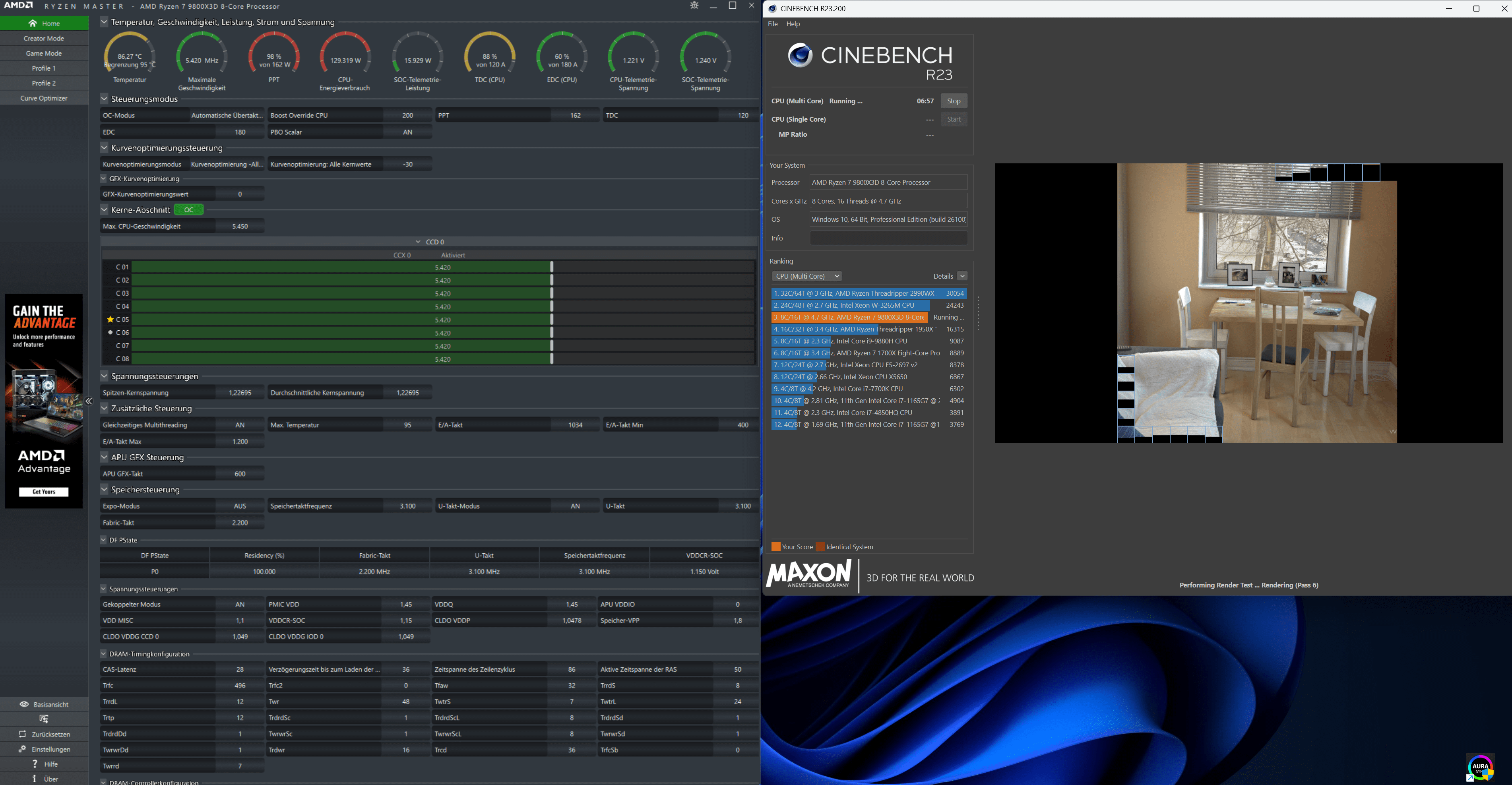 Wenn du mit allem durch bist kannst du mal pls den SoTR Benchmark auf 720p laufen lassen, Man darf aber nicht GPU-Bound sein, sonst pusht das die Werte.Kappe abmachen war bei diesem Exemplar ziemlich leicht. Ca. 45x schieben und keine 5 Minuten mit Akkuschrauber. Ein 9950X letzte Woche waren ~120x.