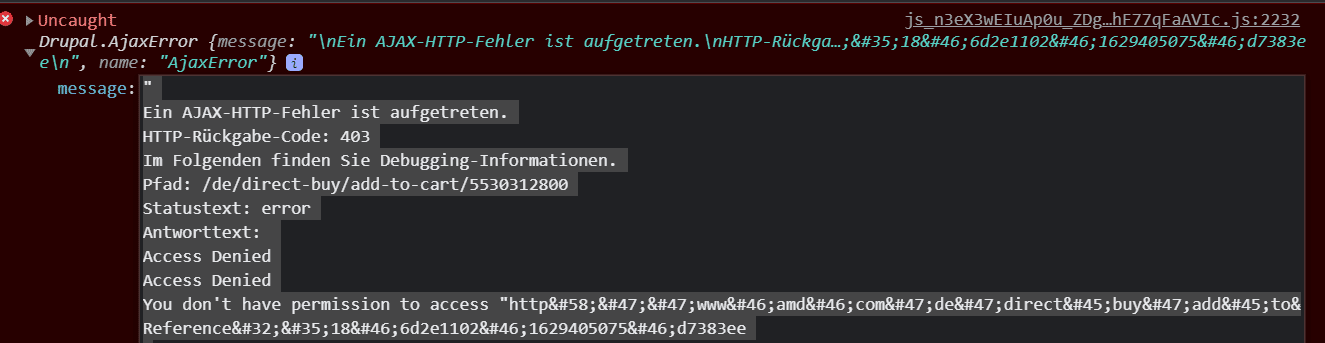 Der Fehler tritt aber aktuell immer noch auf wenn ich versuche eine CPU in den Warenkorb zu legen...
