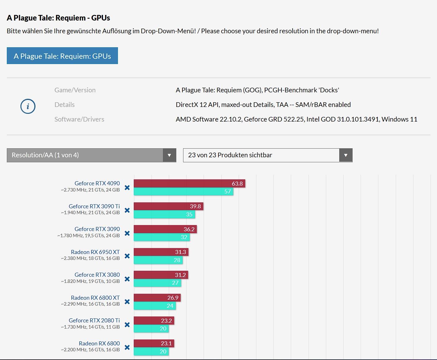 Spitzenreiter ohne Raytracing dürfte wahrscheinlich immer noch A Plague Tale: Requiem sein was die Anforderungen betrifft.