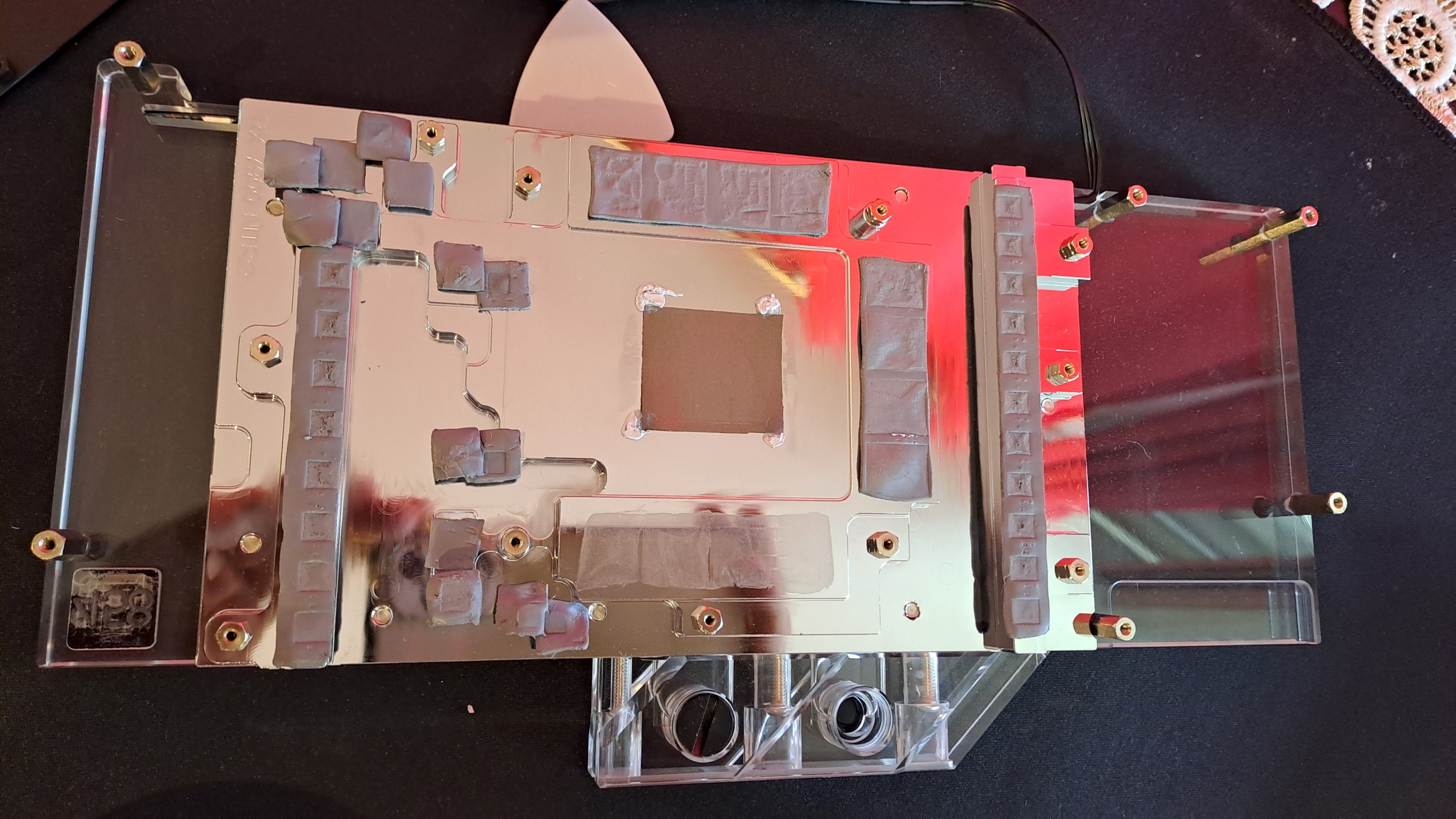 Echt unglaublich was ein vernünftiger Zusammenbau und andere Pads bewirken können. Da ich mit den originalen Pads speziell beim VRAM nicht zufrieden war, da zu kurz und für eine kleine Customwakü waren mir die Temperaturen etwas zu hoch. Nach ein paar Tagen mit den Originalpads kletterte das Richtung 76°. Wahrscheinlich weil die einfach zu kurz sind. Also habe ich mir Softpads bestellt, diesmal etwas bessere mit 11W/k. Die 14 W/k waren mir dann doch etwas zu teuer für 2 Streifen. Habe für die Jetzigen schon knapp 20 Euro bezahlt, ergo nur für den VRAM.