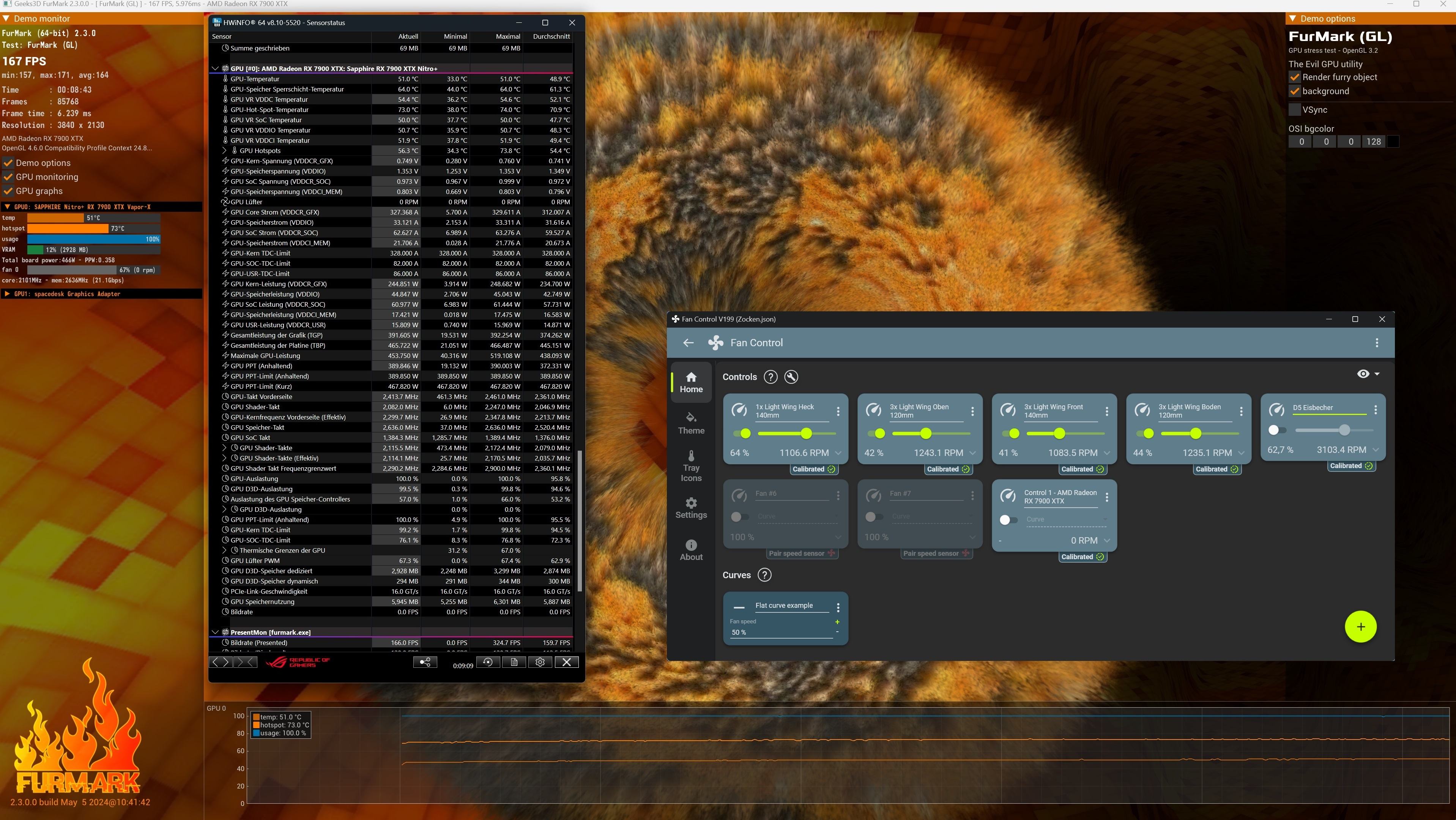 Aber alles in allem kann man es trotzdem verwenden. Bisschen schlechter als eine sehr gute Wärmeleitpaste, aber dafür verliert es auch nach Monaten nicht an Leistung. Zu guter Letzt hab ich noch ne RGB Beleuchtung für die CPU nachgerüstet. Das Repaste Drama und die Temperaturen der 7900XTX sind nun endgültig Geschichte. Hat lange gedauert bis ich die Karte bei +15% PL mit guten Temps auf Dauer auch so bedenkenlos laufen lassen kann.
