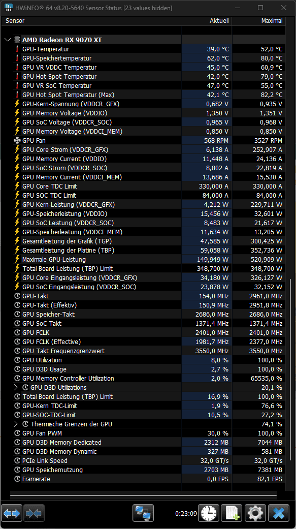 Auf 60% sind es ~2100RPM und man hört sie immernoch.