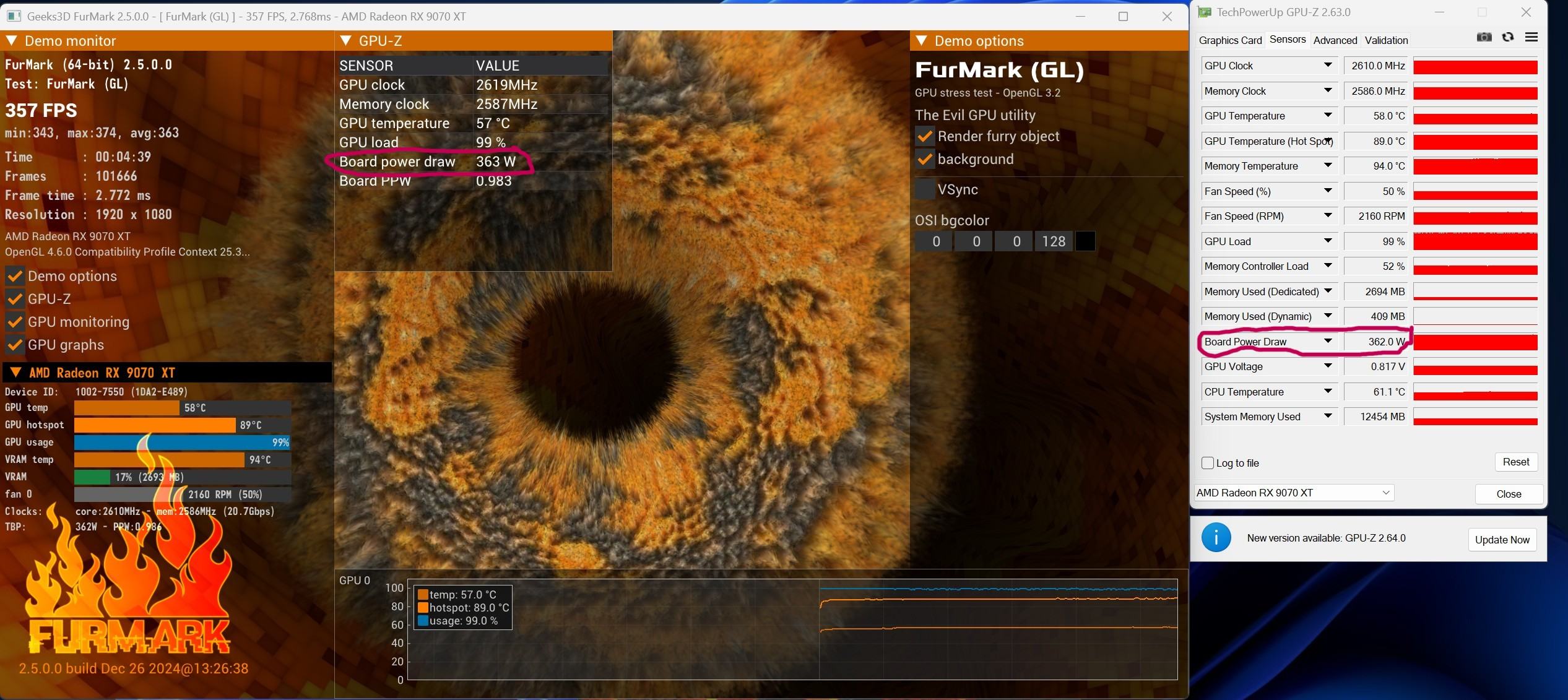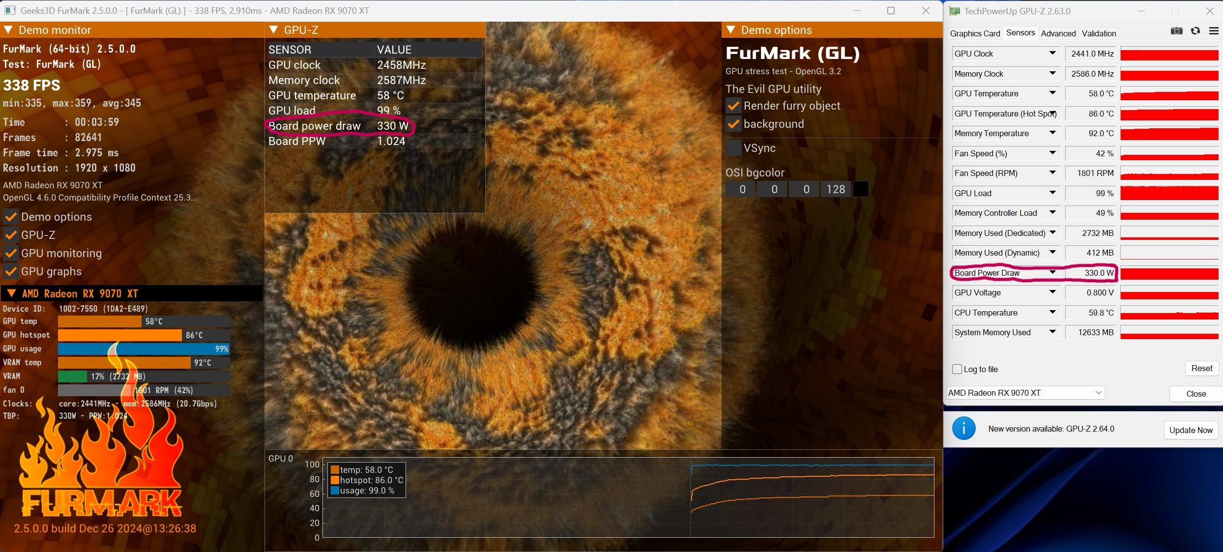 Also Backplate wieder drauf, die Karte zieht wieder max. 330 Watt, Backplate wieder runter, die Karte zieht wieder über 360 Watt.
