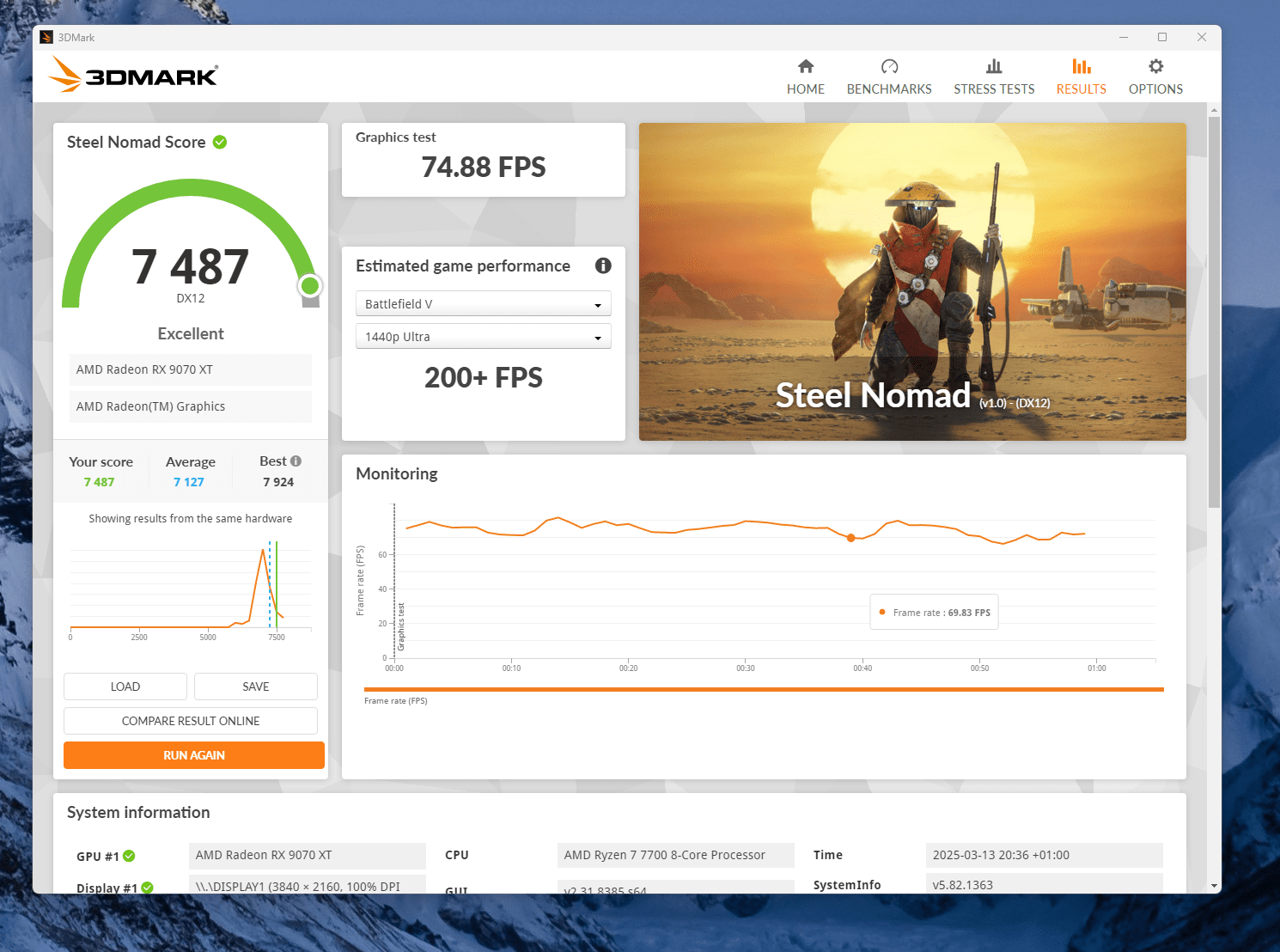 Steel Nomad ohne Backplate, Nitro+ @ -75mV und +10% Powerlimit (tatsächliche Board PWR = ca. 360 Watt):