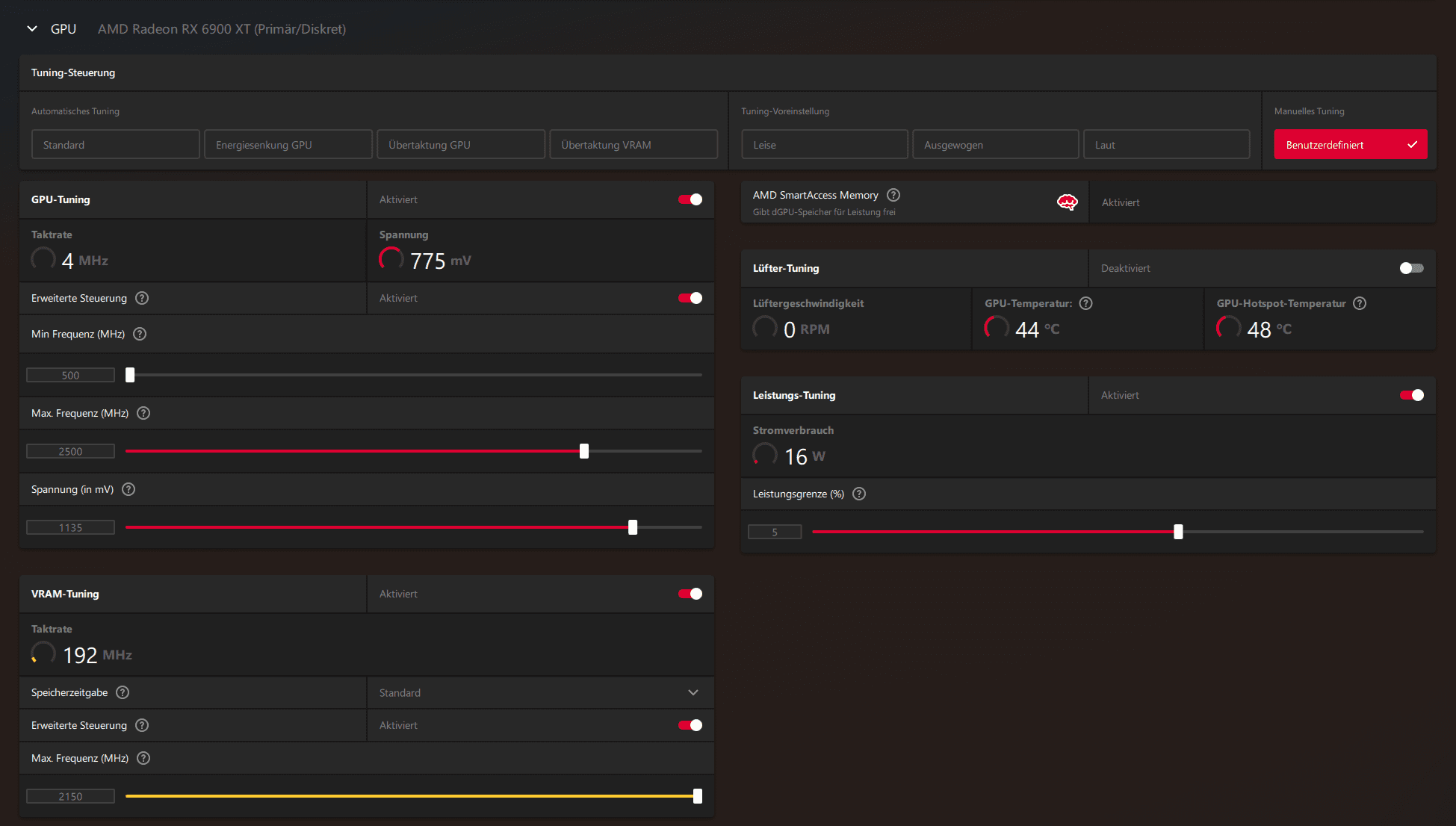Ich habe alles durchgetestet, stabil wurde die Karte mit UV und Takt-Limit. Ich kann es nicht erklären, ich vermute die Karte + Treiber haben Probleme mit Lastwechseln, "verschluckt" sich und schießt sich ab durch zu viel oder wenig Voltage. Teilweise so extrem, dass die Karte im Gerätemanager ausgegraut ist und erst wieder aktiviert werden muss.