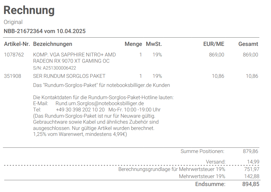 ach so meinste. Bei ner Taichi für UVP 689€ bräuchte man nicht überlegen. Bei 60€ jetzt nun doch. Für die Nitro 9070XT habe ich auch 899€ geblecht. :unsure: So gesehen dürfte die Gainward GeForce RTX 5070 Ti Phantom GS der bessere Deal sein. Aber sicher bin ich mir nicht. Ich weiß nur das alle 9070XT hier irgendwelche Macken hatten.