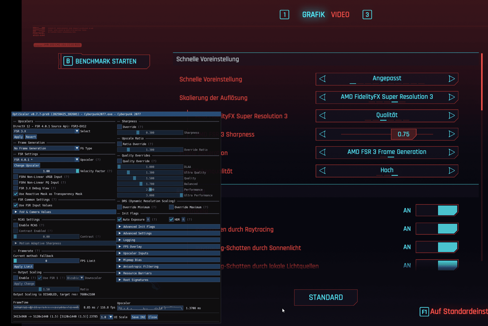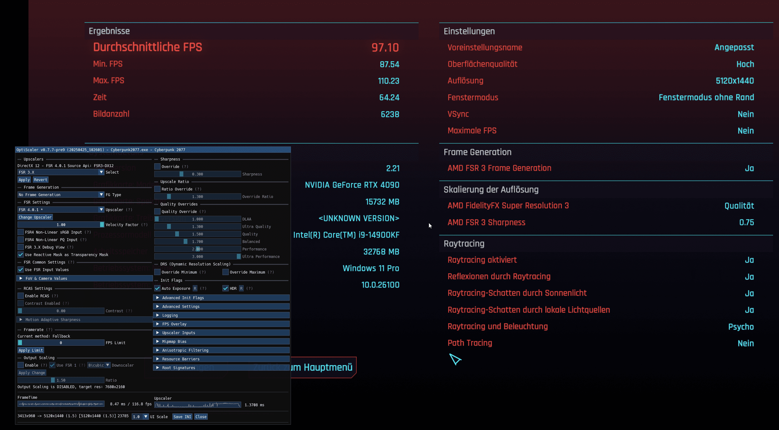 Hintergrund: Hab festgestellt, dass ich in Phantom Liberty seinerzeit wohl Nebenquests liegenließ, weil ich gierig nach der Hauptstory war. Das Versäumnis will ich nun nachholen. In Cyberpunk zuletzt von Nvidia-Karten kommend (4080 S und 5080) bin ich jedoch erschrocken, als ich die Spieleoptik sah. Ob uns hier das gefällt oder nicht: Das FSR-3-Gekrissel in Bewegung ist in CP eine Zumutung. Zumindest, wenn man wie ich auf demselben System die Konkurrenztechnologie gesehen und gespielt hat und somit unmittelbar vergleichen kann. Das will ich mir nicht ansehen müssen. Also muss Optiscaler-FSR-4 her, bis CD Project Red aus den Puschen kommt.
