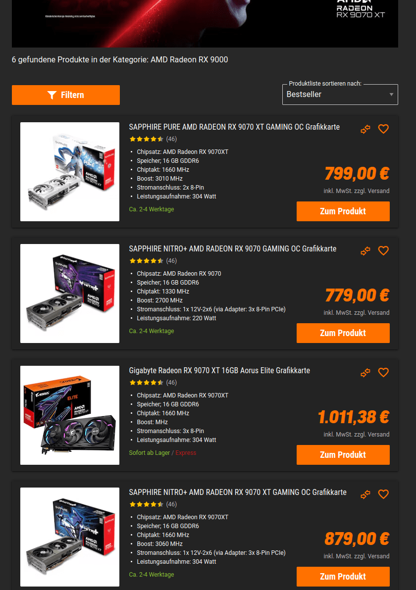 Ich gebs auf. Wenn einer ne 9070XT zuviel bestellt hat - gerne melden :d